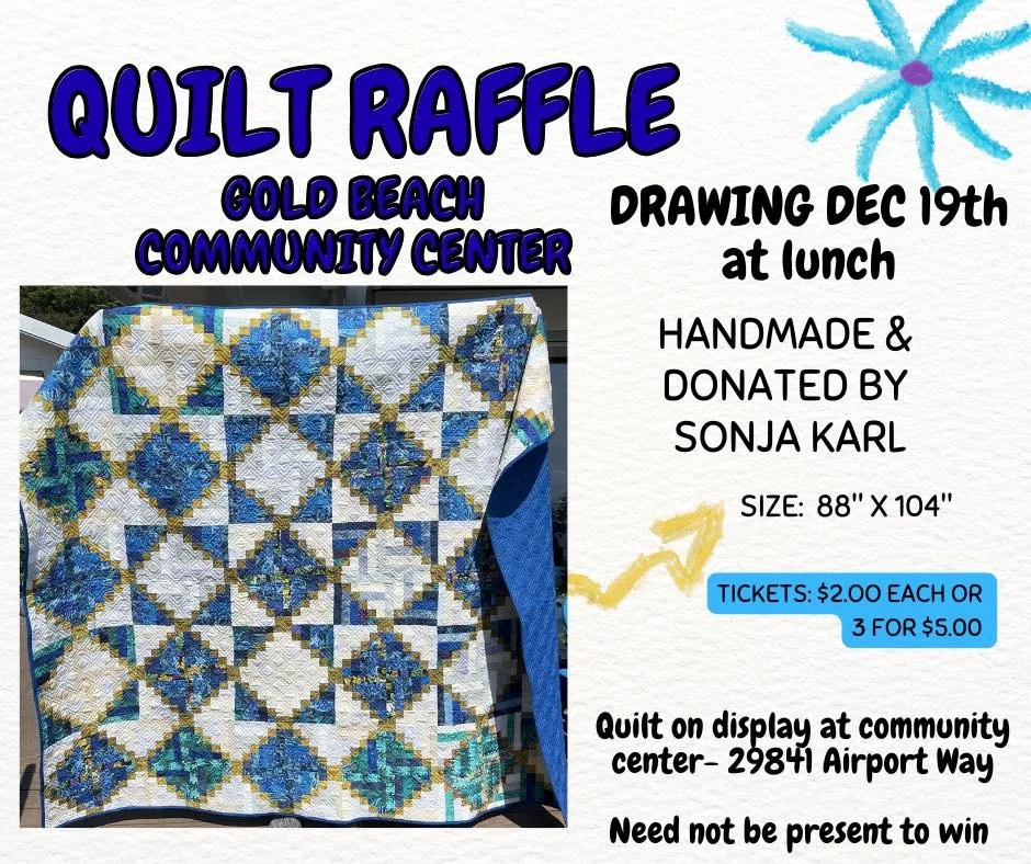 Dec 19: Quilt Raffle Drawing - one lucky winner will be receiving this beautiful, locally made quilt! Get your tickets now to enter into the drawing!! Proceeds support Meals on Wheels